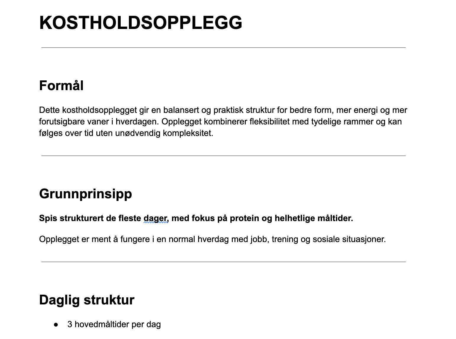 Dette er et personlig trenings- og kostholdsopplegg laget basert på dine svar i et kort skjema.